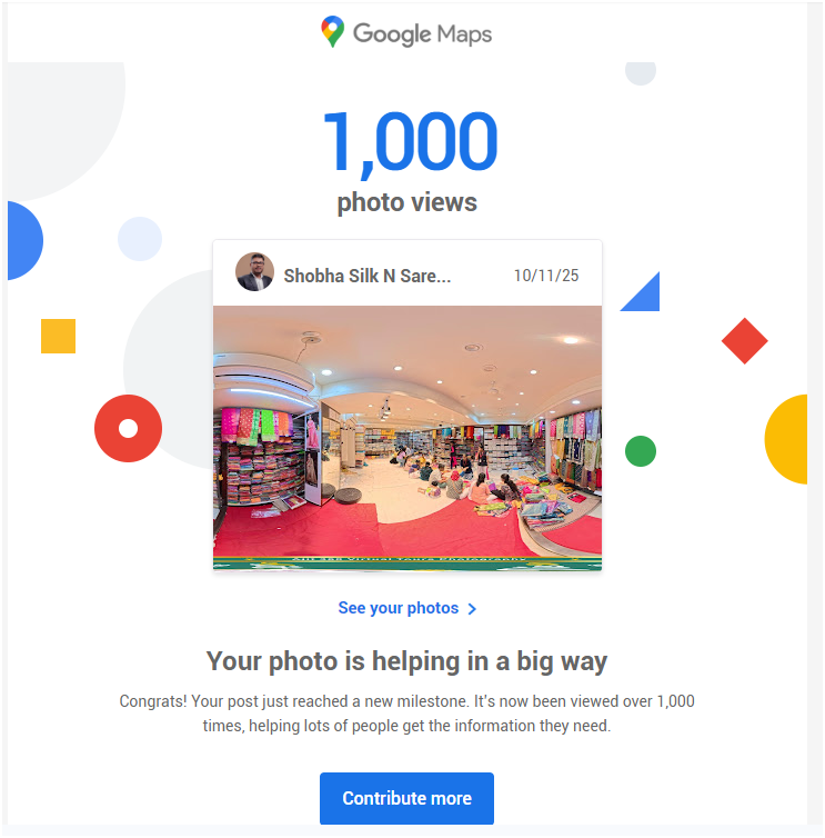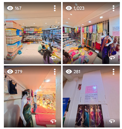 After adding a Google 360° virtual tour to Shobha Silk N Sarees’ business profile, customers could explore the showroom online before visiting — from saree sections to ready-made collections and interiors.